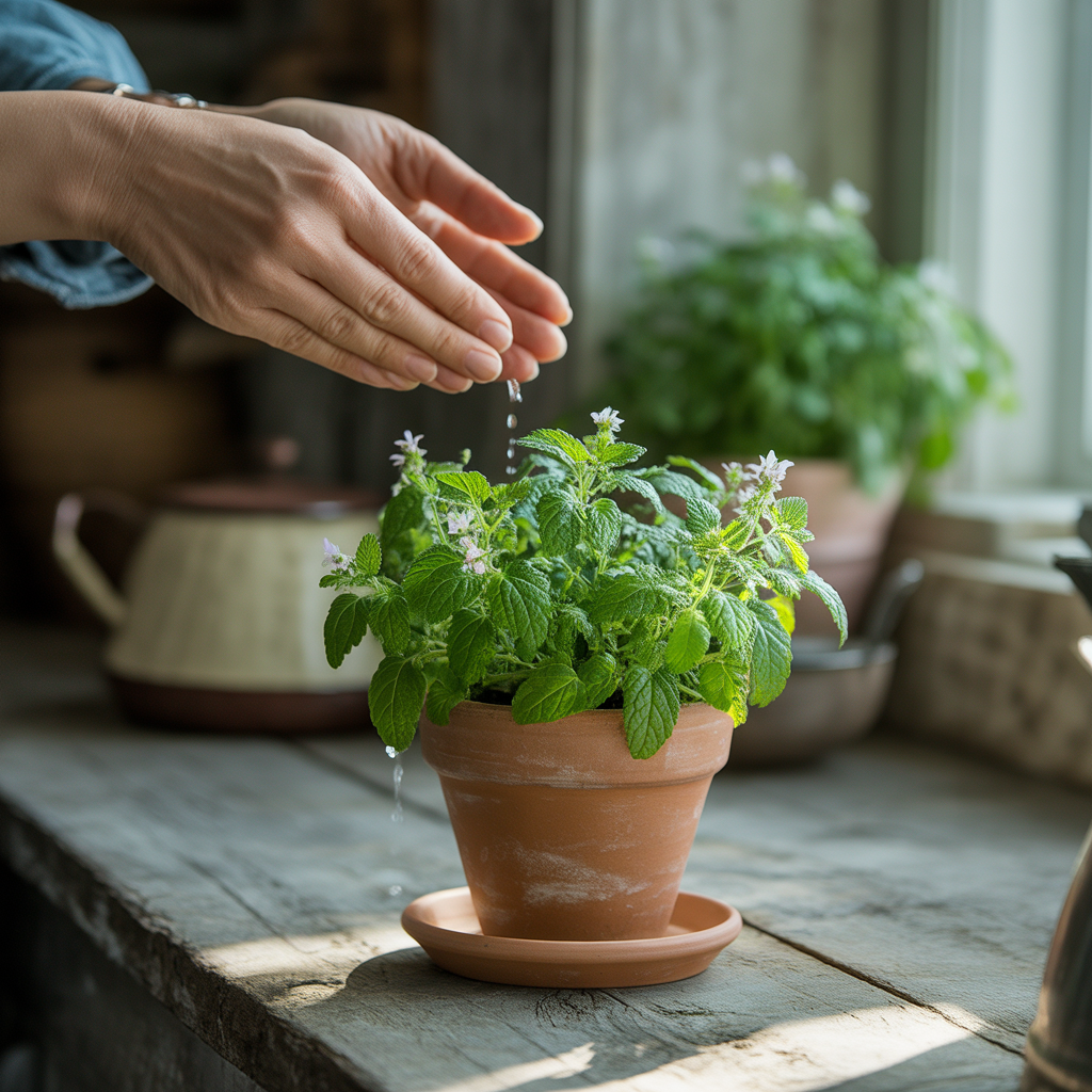 레몬밤은 과습을 싫어하는 허브라서 ‘겉흙이 마른 후 물 주기’ 원칙을 지키는 게 좋아요. 특히 비가 자주 오는 장마철엔 물빠짐에 특히 신경 써야 해요.