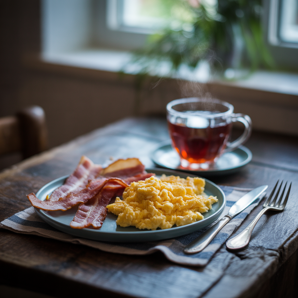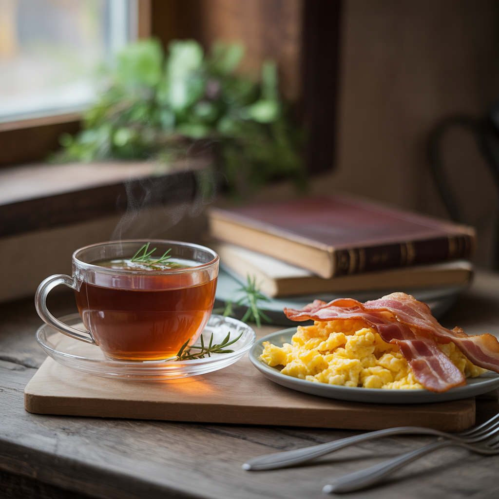 짭짤하고 고소한 베이컨과 촉촉한 에그는 영국식 아침의 대표 메뉴죠! 하지만 이 음식은 기름기가 많고, 짠맛도 강해요. 그래서 산뜻한 허브차가 정말 잘 어울린답니다. 특히 페퍼민트나 레몬버베나 같은 상쾌한 향이 나는 허브차가 베이컨의 느끼함을 딱 잡아줘요.