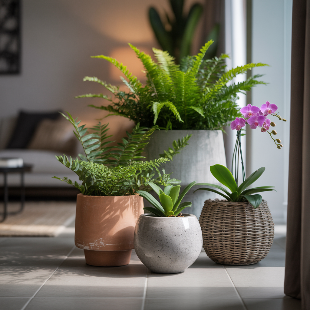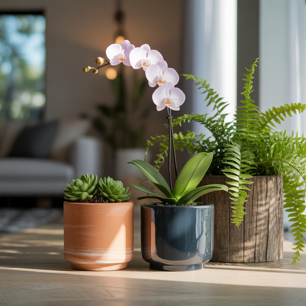 | 세라믹 | 광택 있는 표면, 무게감 있음 | 고급 인테리어 효과 | 무거워서 이동 불편, 깨지기 쉬움 | 관엽식물, 화려한 꽃 식물 |