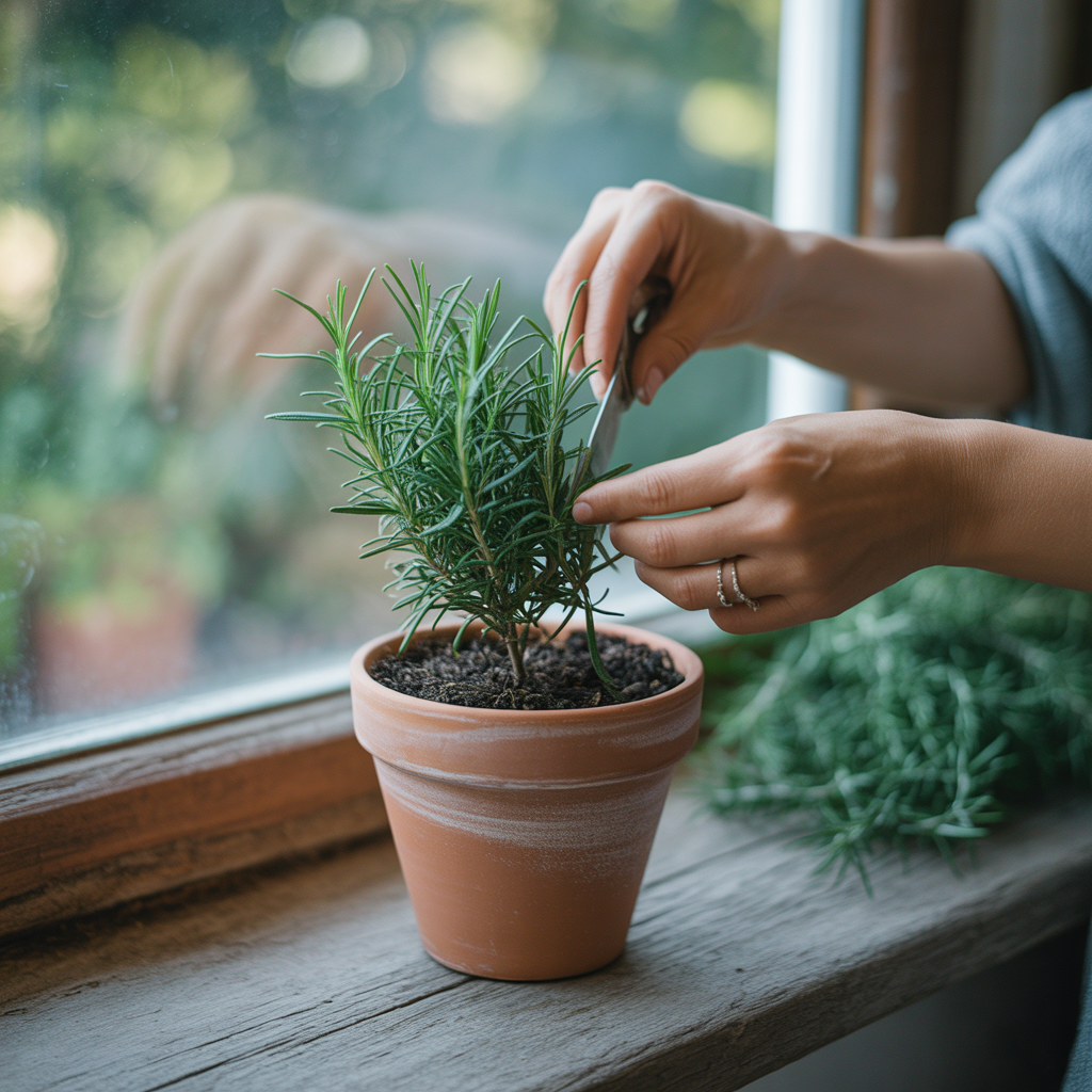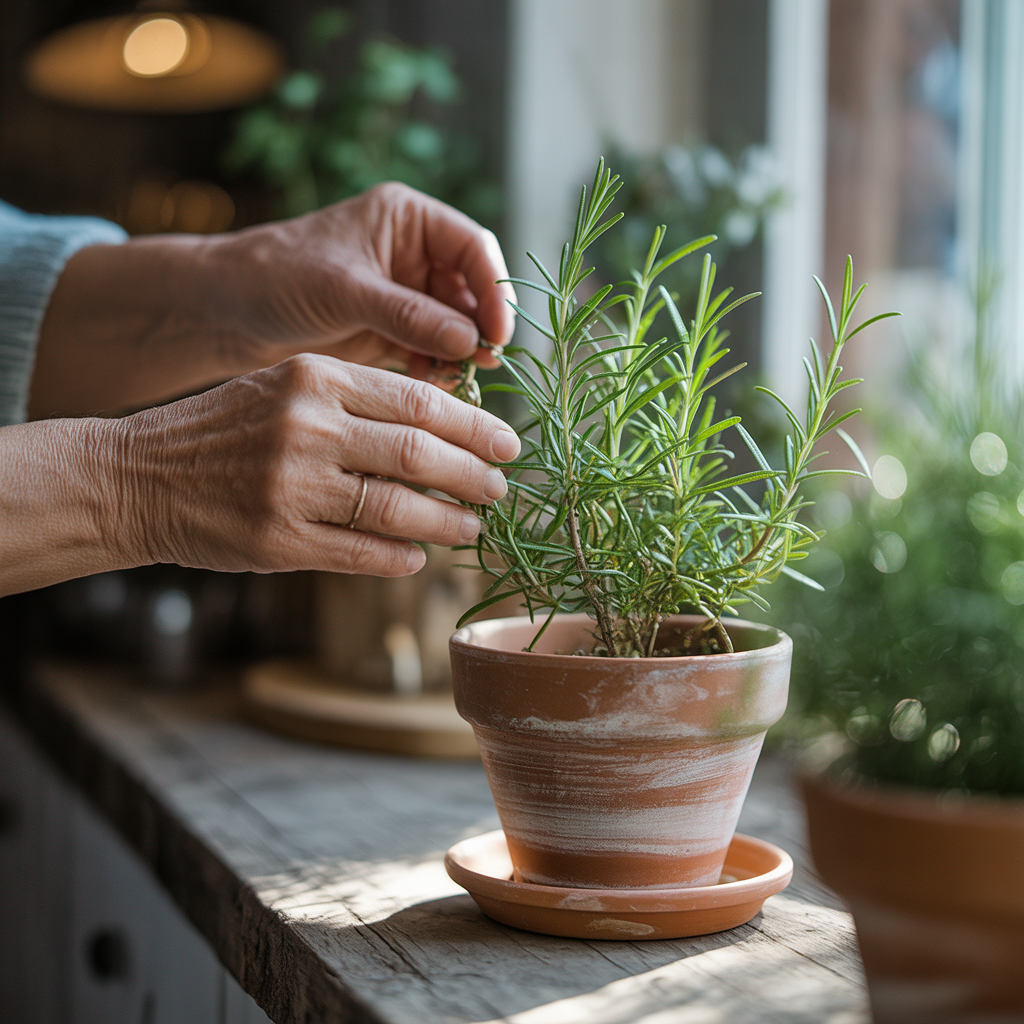 가지치기한 줄기를 햇볕이 잘 드는 화분에 심으면 새로운 로즈마리 화분을 만들 수 있어요. 정말 경제적이죠!